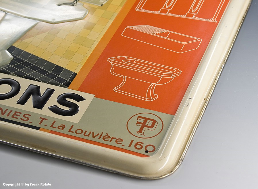 | Besonderheiten: | trotz des Zustandes ein recht selten angebotenes Belgisches Bierschild aus den 30er Jahren |