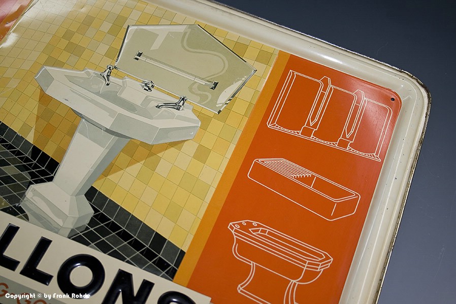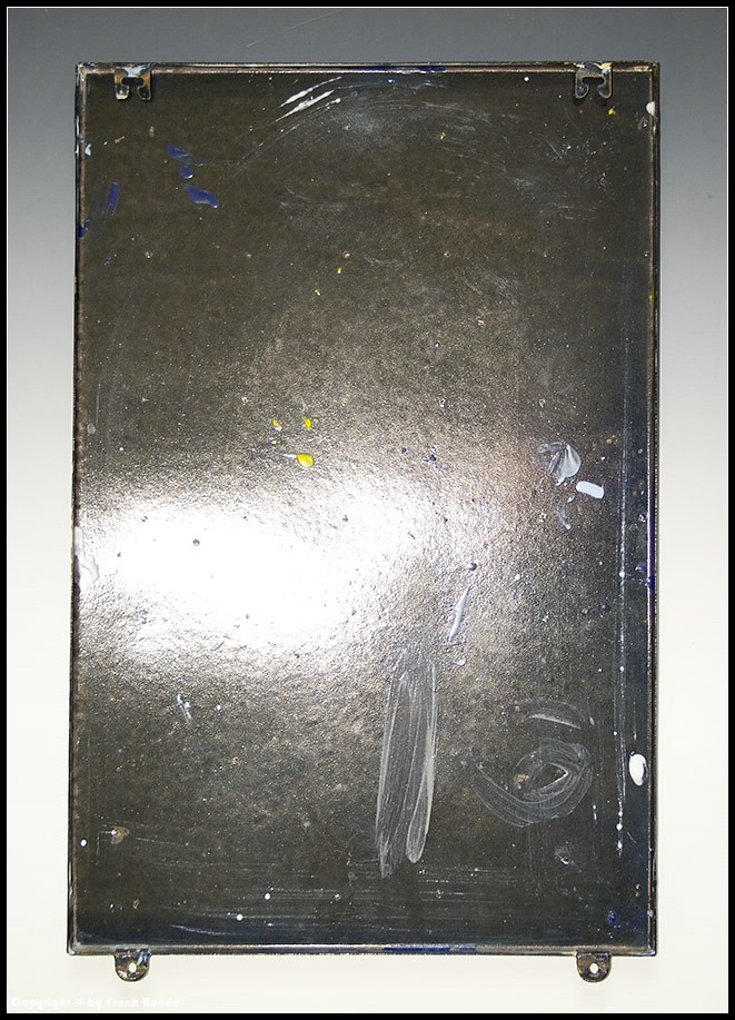 | Beschädigungen: | es gibt nur 3 kleine Emailabplatzer am abgekanteten Rand + an der unteren Aufhängelasche |