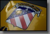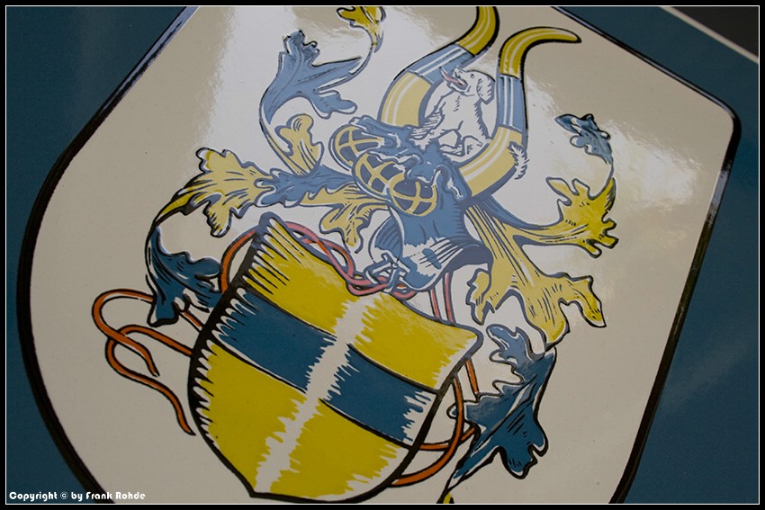 | Besonderheiten: | diese gewölbte Version wird recht selten angeboten. Buchstaben und Emblem sind fühlbar erhaben emailliert. Rückseite mit schönen Emailschlieren |