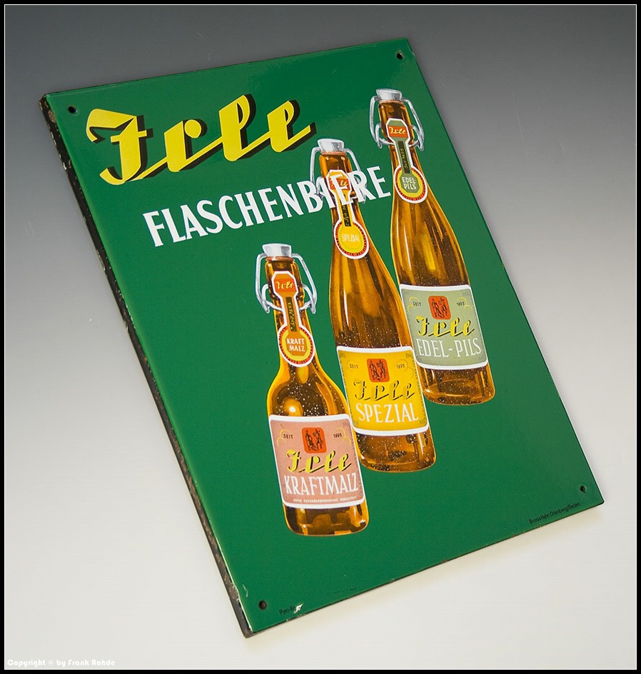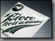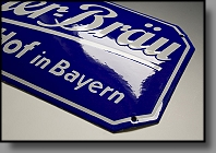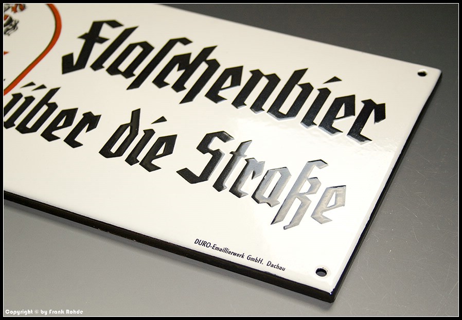 | Besonderheiten: | schöne Rückseite mit Emailschlieren...sehr selten angebotenes Brauereischild in toller Erhaltung |