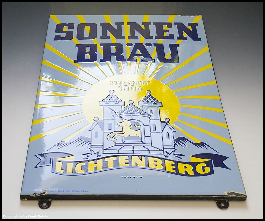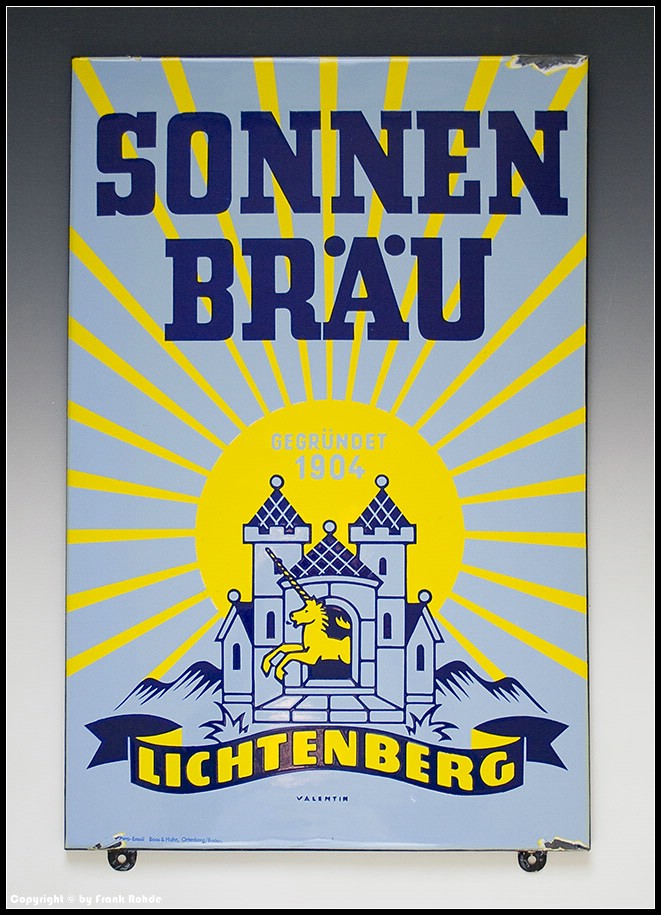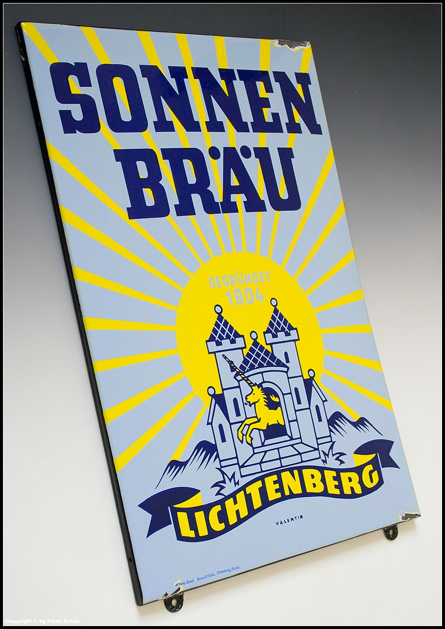Emailschild "SONNEN BRÄU GEGRÜNDET 1904 LICHTENBERG" (Nr.: B 16) ...VERKAUFT ! |