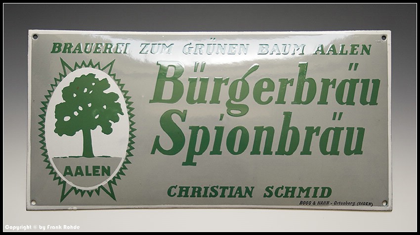 Emailschild "BRAUEREI ZUM GRÜNEN BAUM AALEN Bürgerbräu Spionbräu" (Nr.: B 11) ...VERKAUFT ! |