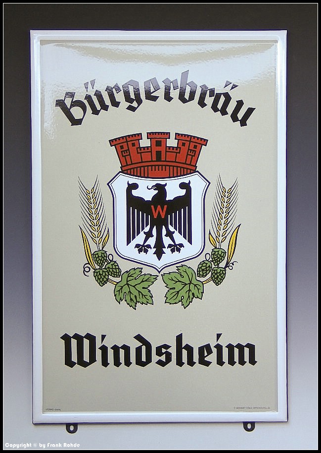 Emailschild "Bürgerbräu Windsheim" (Nr.: B 2) ...VERKAUFT ! |