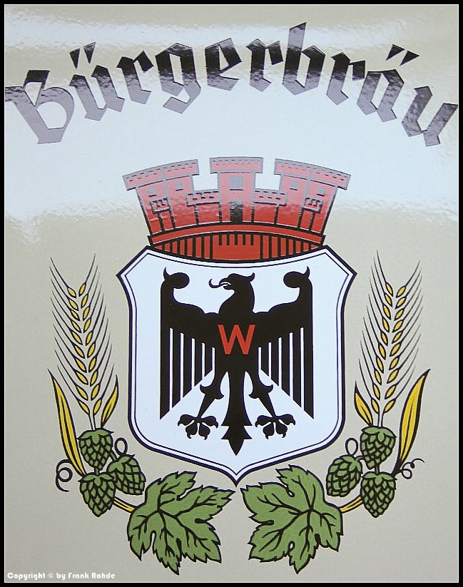 | Kratzer: | Schild hat nur einige kleine Oberflächenkratzer im "rb" von "Bürgerbräu", sonst soweit zu sehennur noch ein paar weitere vorhanden |