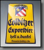 Emailschild "Colditzer Exportbier hell u. dunkel" (Nr.: B 1) ...VERKAUFT ! |