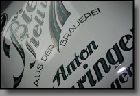 | Beschädigungen: | das Schild hat insgesamt nur 2 kleine Abplatzer am äußersten Rand unten links und am äußersten rechten Rand und etwa in Höhe zwischen "BRAUEREI" und "Anton" (müßte auf den Bildern gut erkennbar sein) |