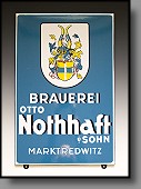 Emailschild "BRAUEREI OTTO NOTHHAFT u. SOHN MARKTREDWITZ" (Nr.: B 13) ...VERKAUFT ! |
