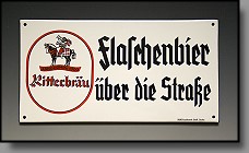 Emailschild "Ritterbräu Flaschenbier über die Straße" (Nr.: B 10) ...VERKAUFT ! |