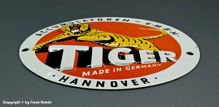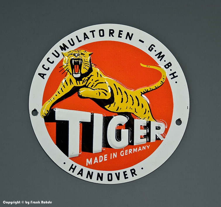 Kleines Blechschild "TIGER ACCUMULATOREN-G.M.B.H. HANNOVER" (Nr.: BL 5) |