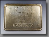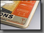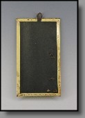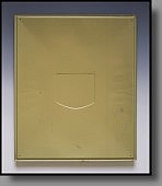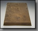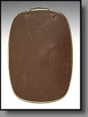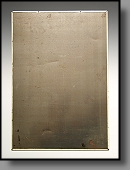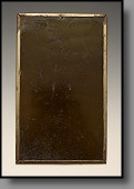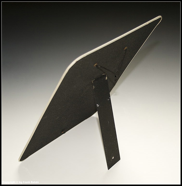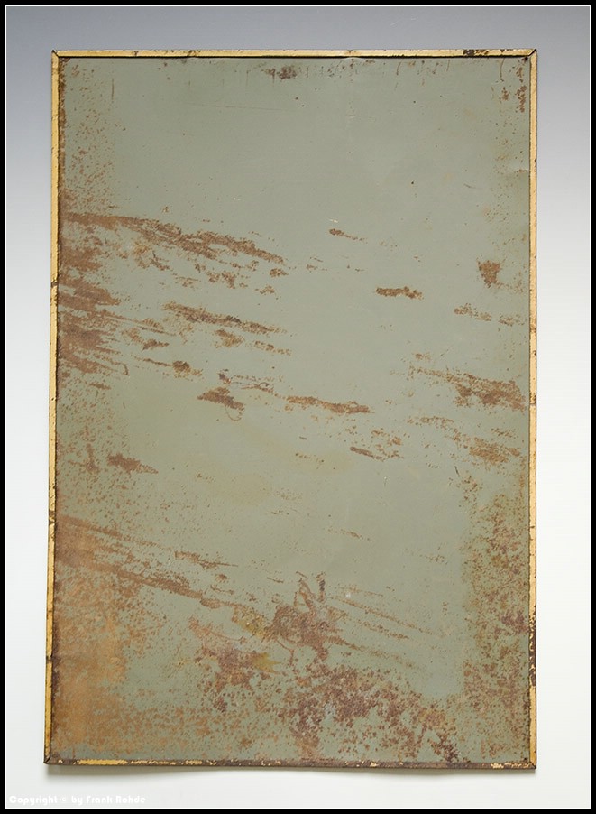 flach mit umgefalztem Rand, Oberfläche ist vorn mit einer dünnen Schicht Kunststoff überzogen (ist Original so) |