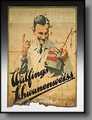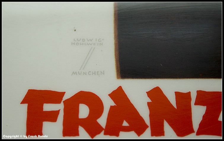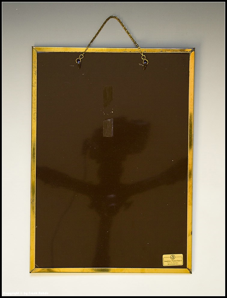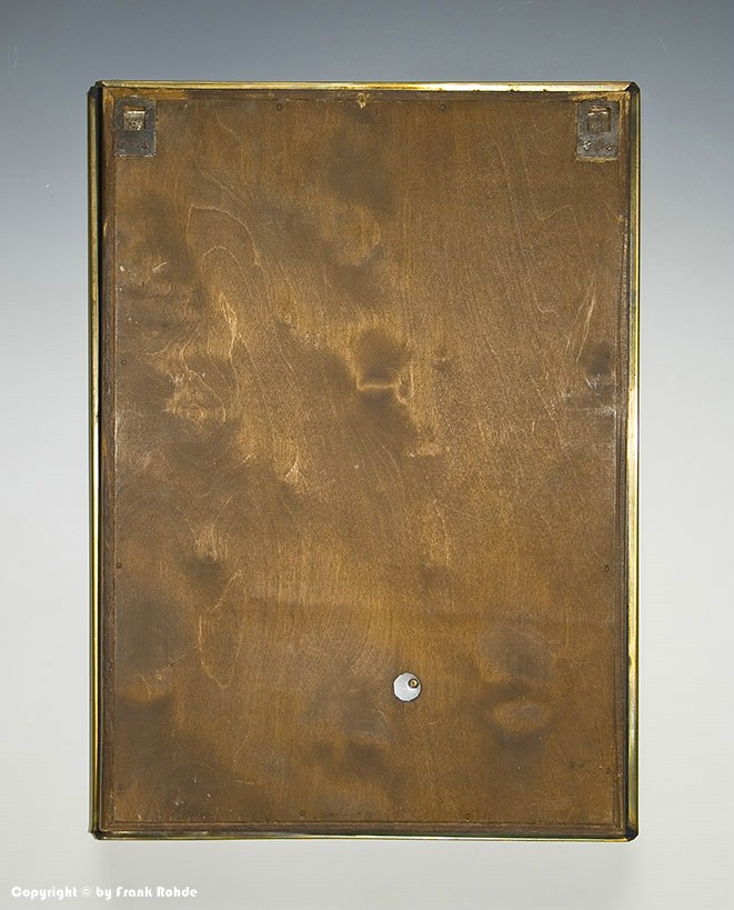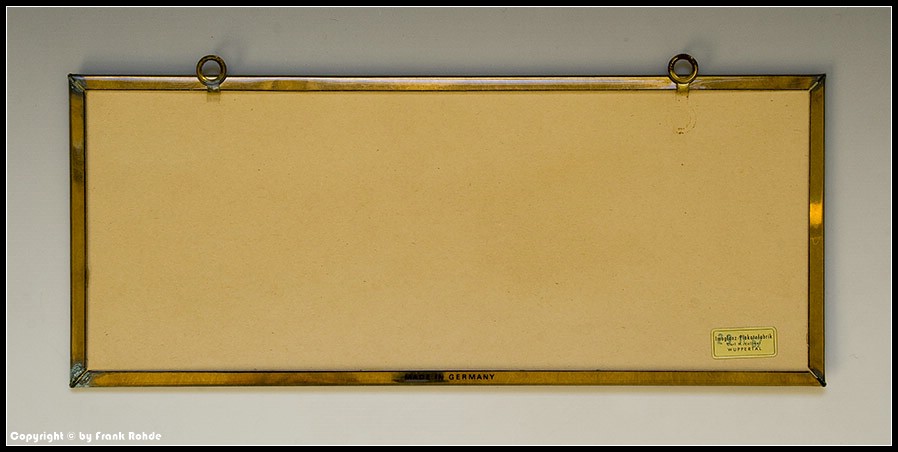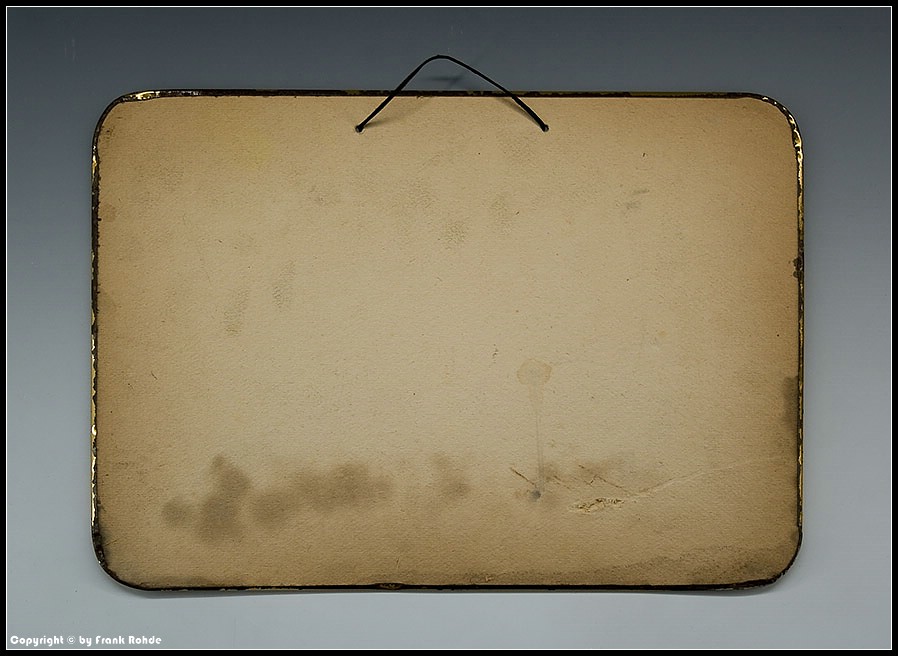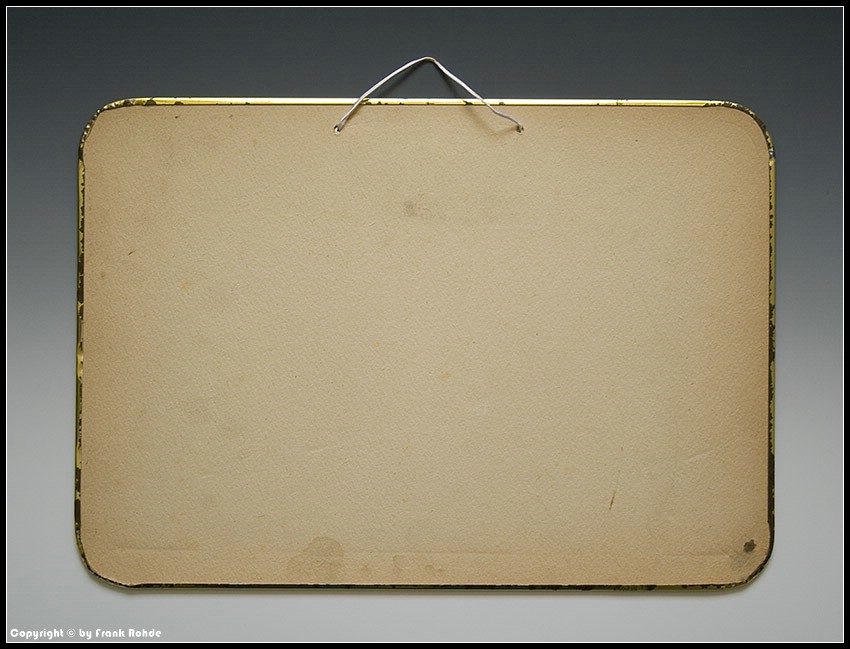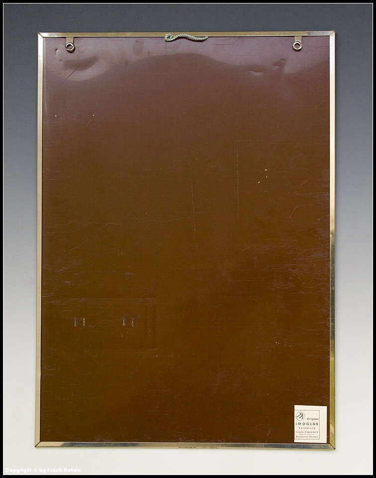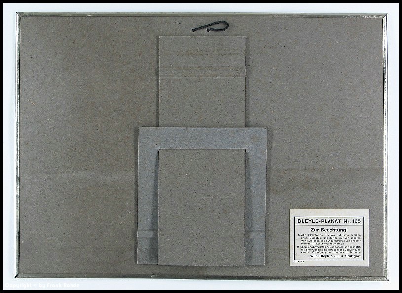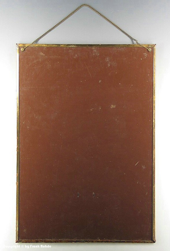| Besonderheiten: | rückseitig (Original) mit starker Pappe hinterlegt. Der Bändel zum Aufhängen ist Original. Diese Version ist wesentlich seltener als irgend eine Version in Email |