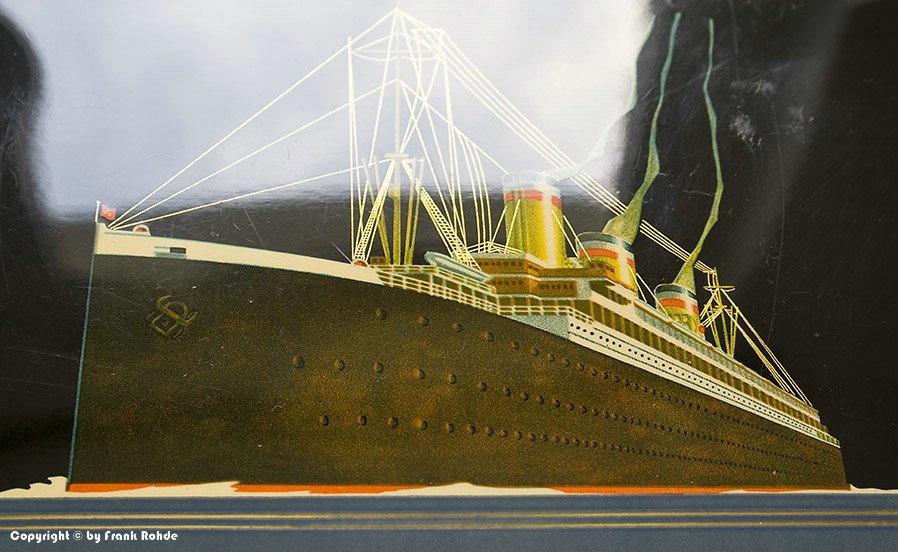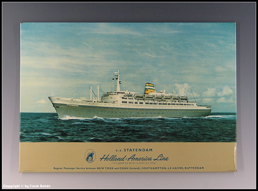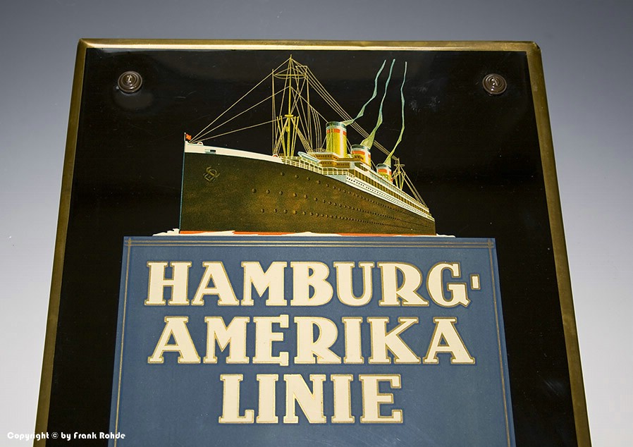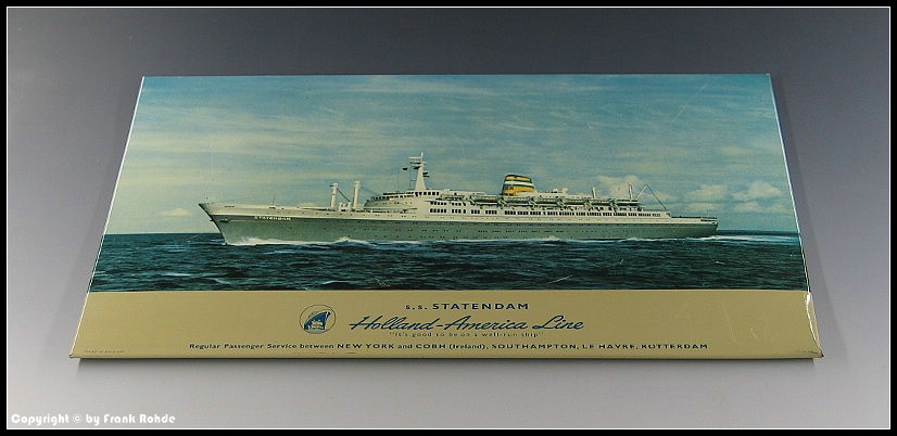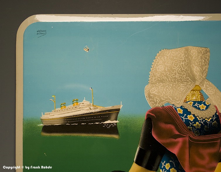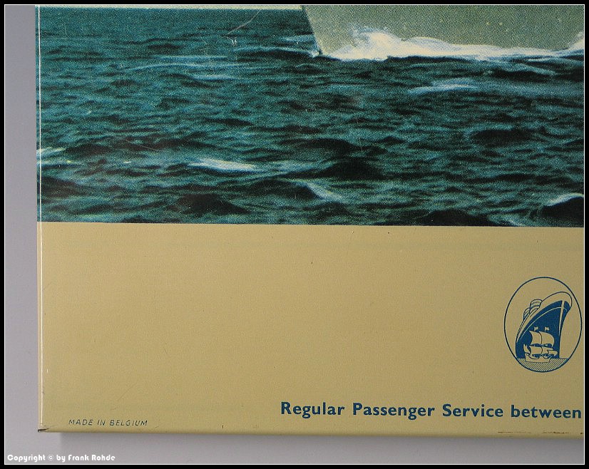 Das Schild wurde seinerzeit als Kalender genutzt (siehe Fach für Kalenderblätter) und hing vermutlich einmal in einem Reisebüro. Absolut selten angebotenes Schiffsmotiv |