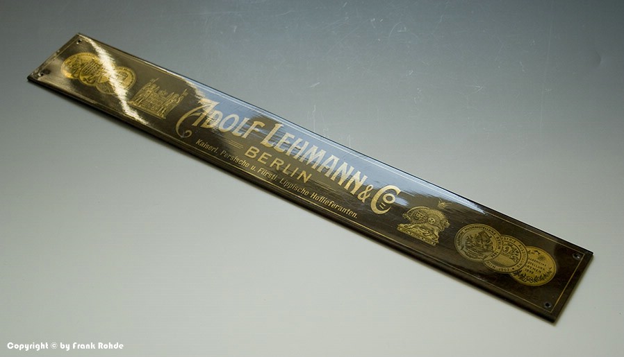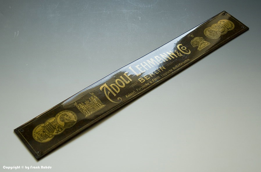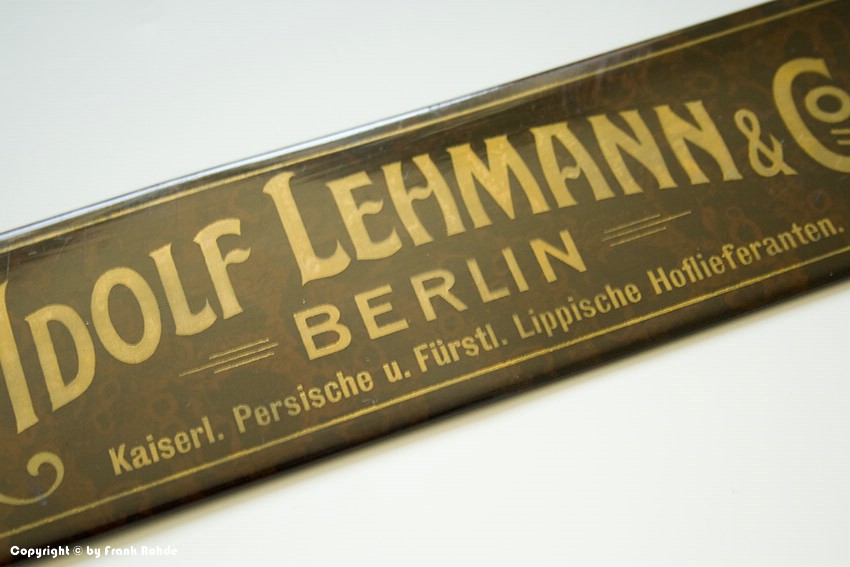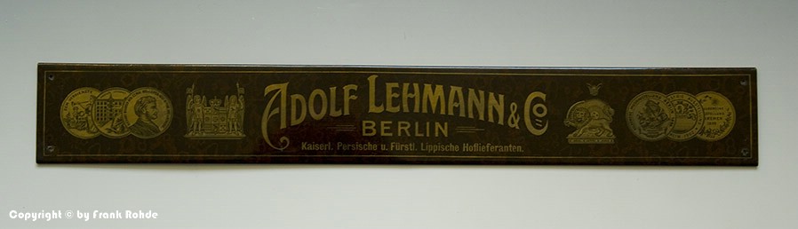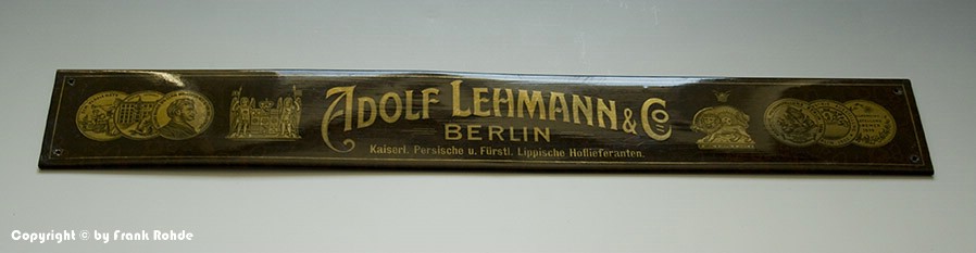 Blechschild "Kaiserl. Persische u. Fürstl. Lippische Hoflieferanten ADOLF LEHMANN & Co" (Nr.: BL 28)...VERKAUFT ! |