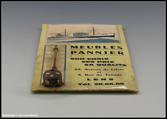 | Besonderheiten: | Das Schild besitzt ein funktionstüchtiges Glasthermometer. Rückseite mit eingelegter Pappe. Ungewöhnliches Schild...! |