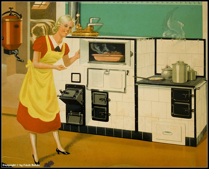 | Beschädigungen: | altersbedingte Gebrauchs/Lagerspuren, leider größere Verfärbungen, die nicht zu entfernen sind, da sich das Blech unter der Kunststoffschicht verfärbt hat. Rost am Schutzkorb des Thermometers |