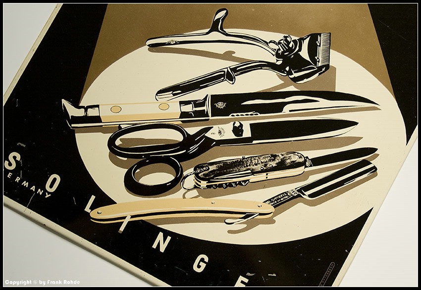 | Besonderheiten: | absolut selten angebotenes Blechschild mit schönen Scheren, Messer und Rasierklingenmotiv |