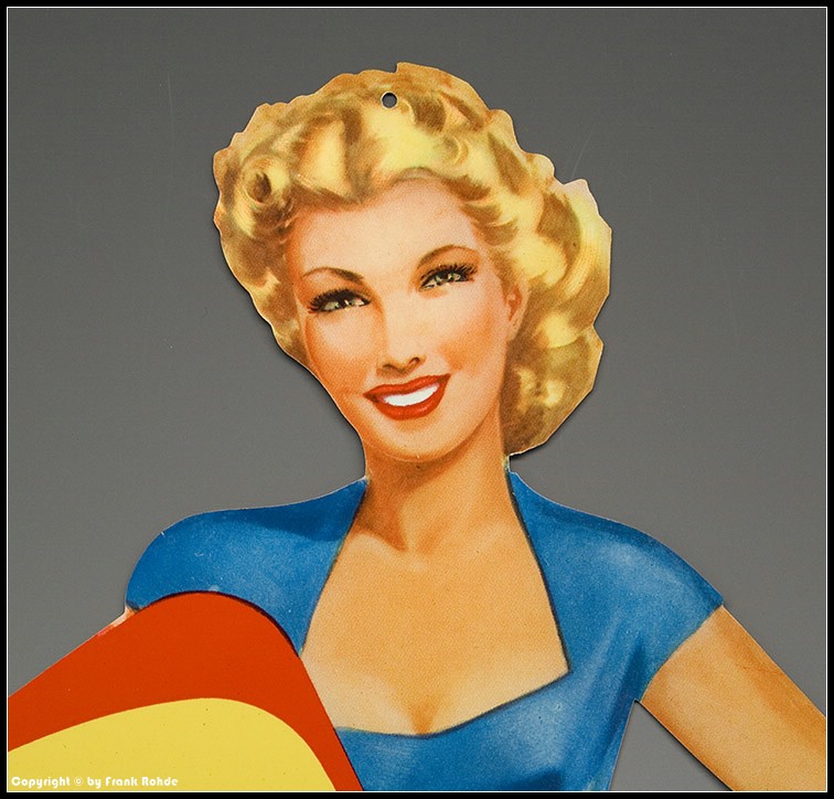 | Besonderheiten: | sehr schöner Erhaltungszustand, passt in jeden Wohnraum oder auch ins Büro. Wunderschönes Objekt für alle PIN UP Fans ! Es wurde noch mit anhaftendem dünnen braunen Schutzpapier aufgefunden, dass vorsichtig mit Wasser entfernt wurde |