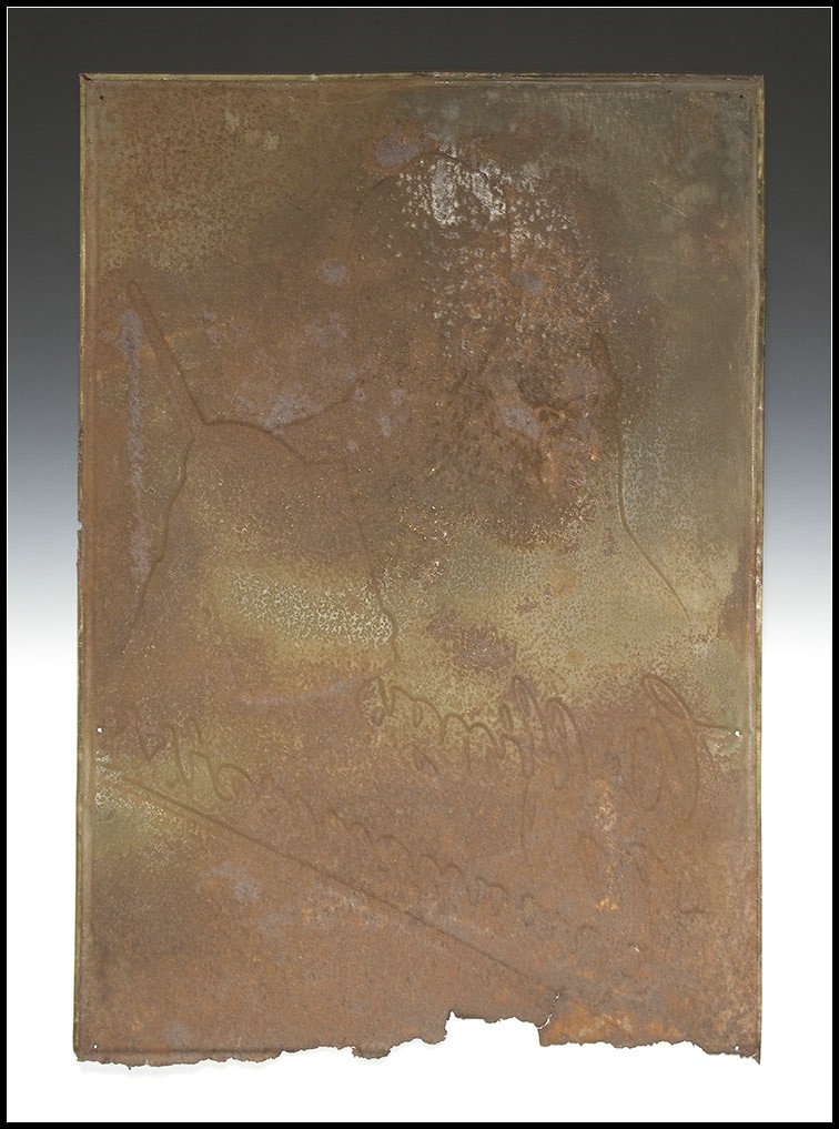 im Eckbereich oben links signiert: Kropat. Insgesamt ein äußerst selten angebotenes Stück für alle Reklame und Türschildsammler. Bitte beachten Sie, dass die Bilder von einem bereits verkauften Schild stammen, Sie erhalten aber ein Exemplar in ähnlich guter Erhaltung |