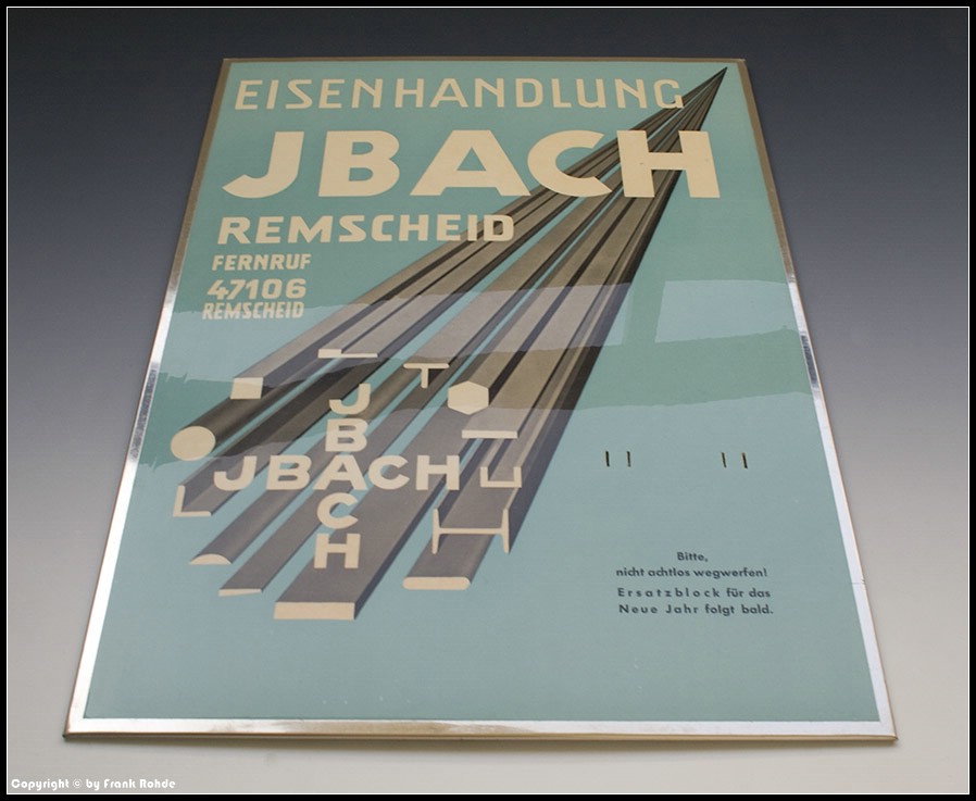 Imoglas Blechschild "EISENHANDLUNG JBACH REMSCHEID" (Nr.: BL 12) |
