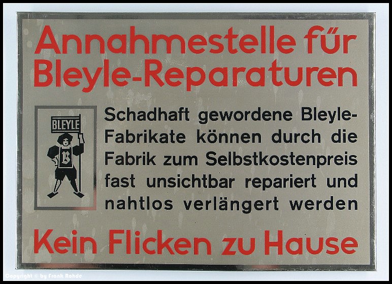 Blechschild "Annahmestelle für Bleyle Reparaturen" (Nr.: BL 29) |