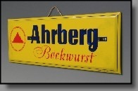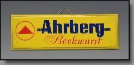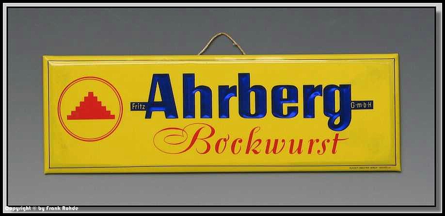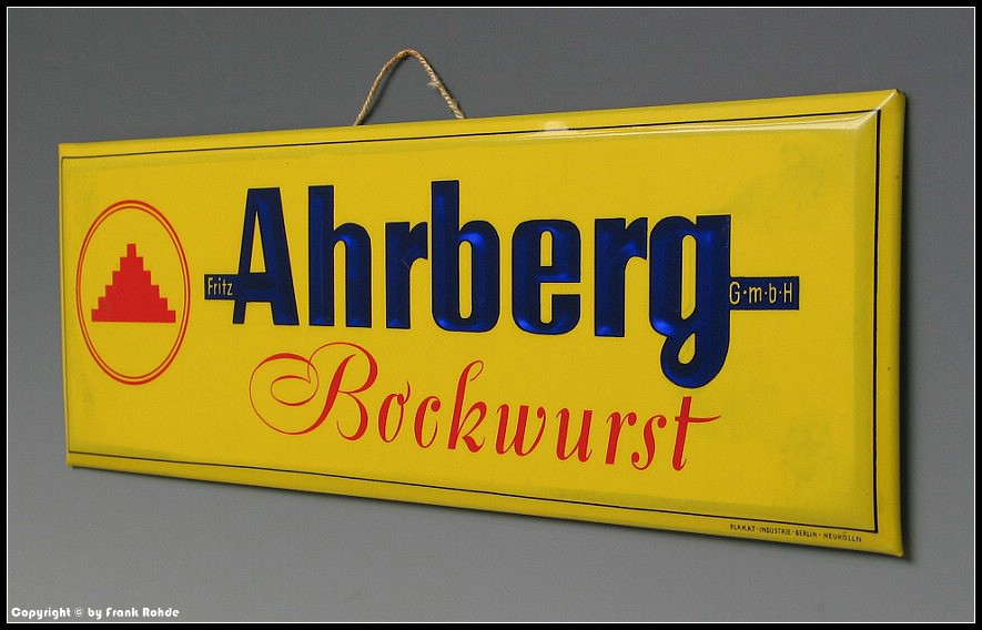 Imoglasschild (kunststoffüberzogenes Blech) "Fritz Ahrberg GmbH Bockwurst" (Nr.: BL 30) ...VERKAUFT ! |